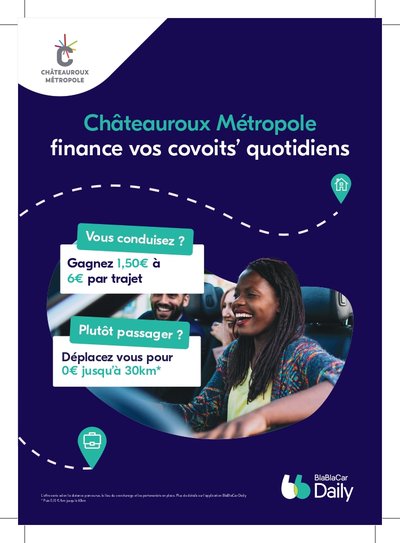 Châteauroux Métropole encourage les déplacements alternatifs et soutient le covoiturage domicile-travail grâce à un partenariat avec BlaBlaCar Daily, en place depuis septembre 2024.