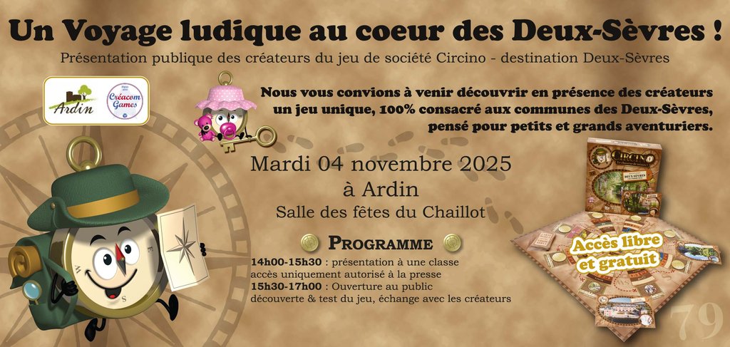 Les créateurs du jeu Circino - Destination Deux-Sèvres seront présents ce mardi 4 novembre à Ardin pour une présentation publique du jeu !