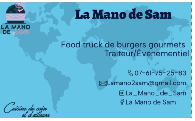 Dès ce soir et tous les lundis, retrouvez "'La Mano de Sam" (burgers gourmands) sur la place de l'église.