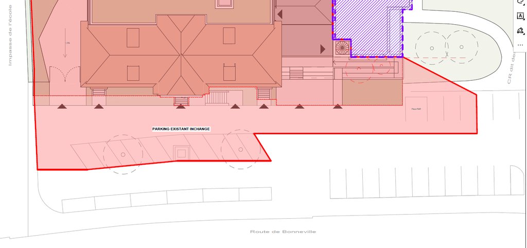 Le chantier de l'école avance et de ce fait nous devons procéder à la condamnation temporaire des places situées en épi aux abords du moment aux morts ainsi que quelques places à proximité du bâtiment de la cantine comme indiqué sur le plan ci-dessous.