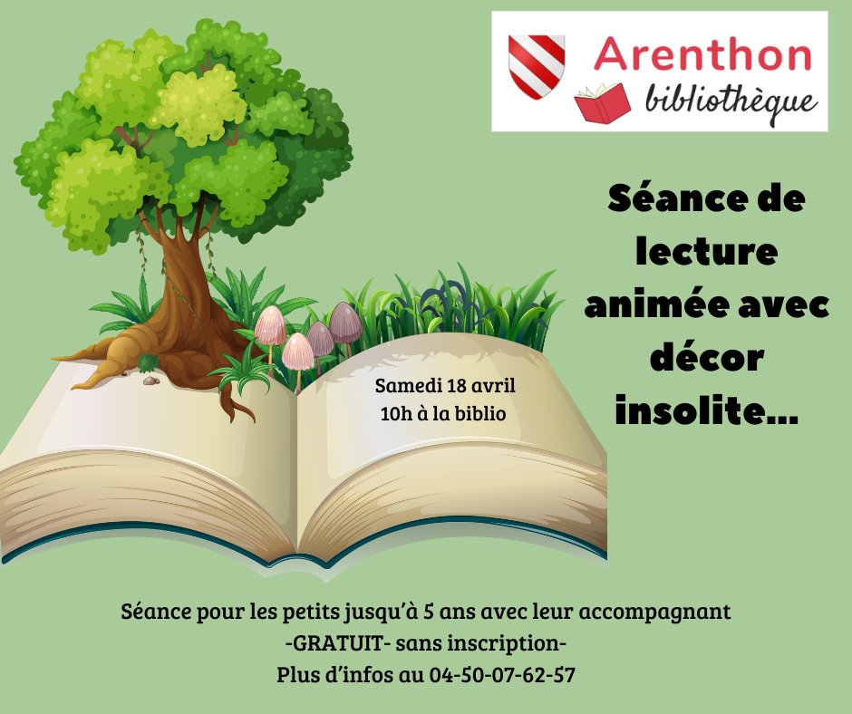 L’équipe de la bibliothèque est heureuse de vous inviter à une séance de lecture animée avec décor insolite… (tapis à histoire) le samedi 18 avril à 10h à la bibliothèque.