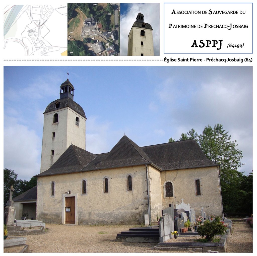 *ASPPJ : « Association de Sauvegarde du Patrimoine de Préchacq-Josbaig (64190), dont le but est de protéger et sauvegarder le patrimoine de Préchacq-Josbaig, d’entreprendre et de soutenir toutes actions destinées à favoriser la restauration de l’église notamment ; de réunir des fonds nécessaires aux réparations. »