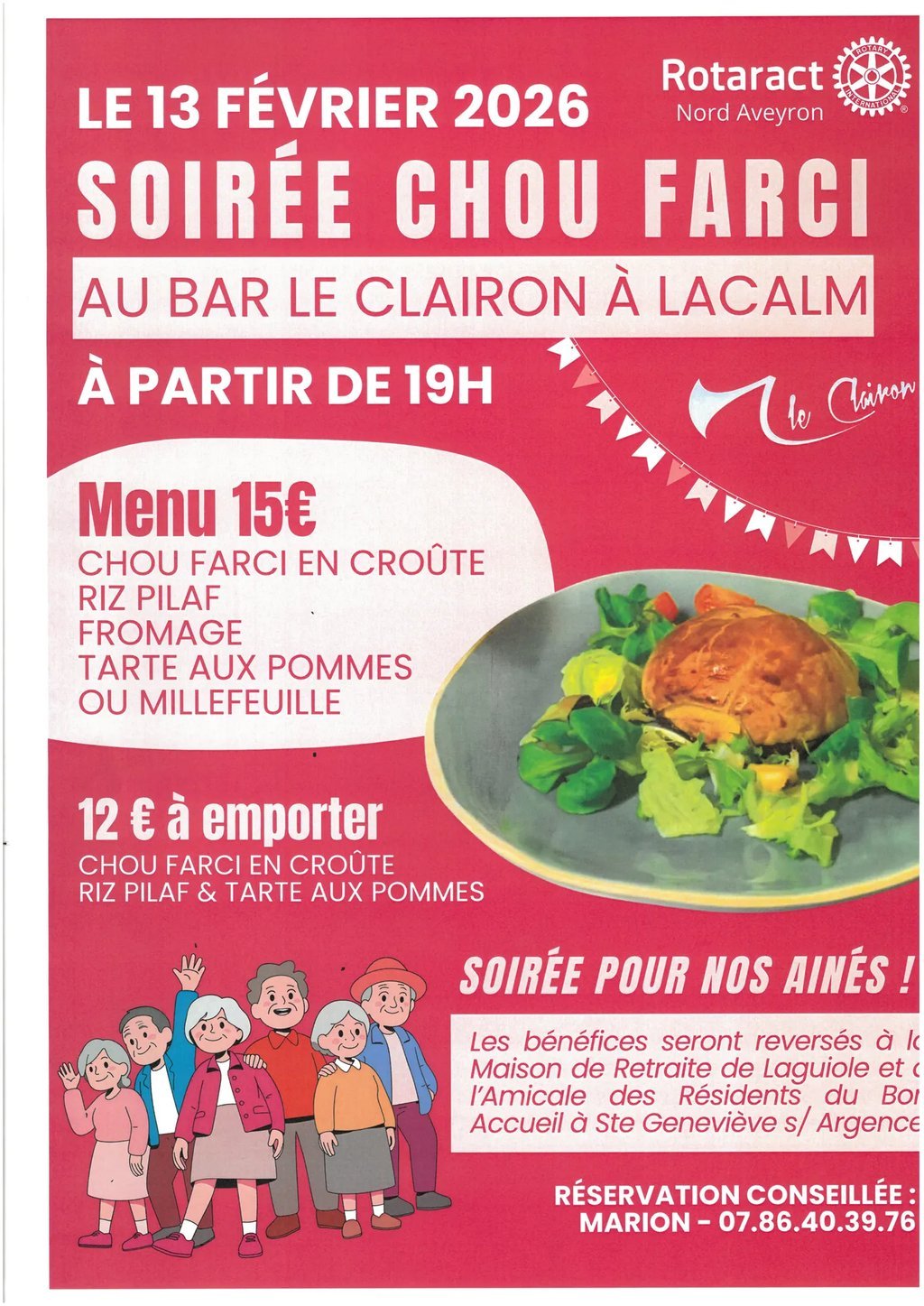 Soirée chou farci pour nos ainés ! Organisé par le Rotaract Nord Aveyron.