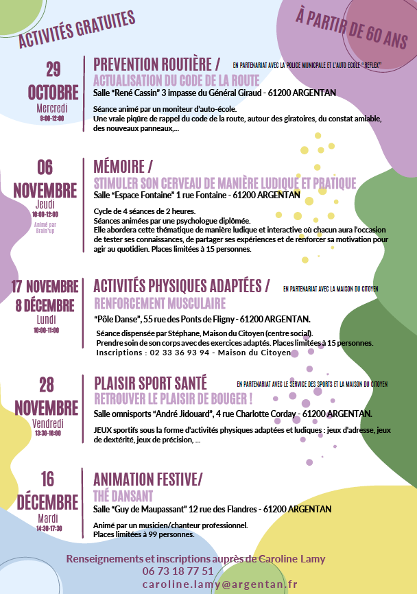 Renseignements et Inscriptions Caroline Lamy au 06 73 18 77 51 ou caroline.lamy@argentan.fr