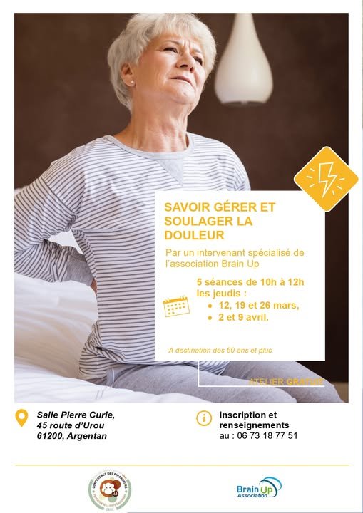 Un programme de 5 séances conviviales est proposé pour aider les seniors à mieux comprendre les mécanismes de la douleur, apprendre à en parler et découvrir des solutions simples pour la soulager au quotidien.