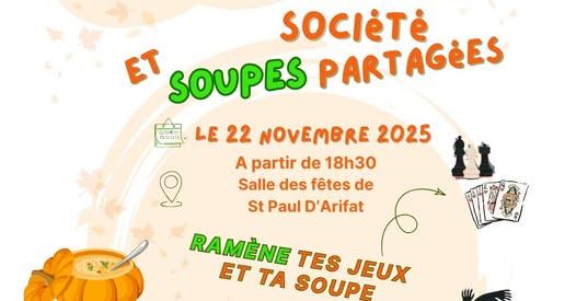 Une soirée pour nous retrouver autour d'une bonne soupe chaude que vous aurez réalisé ( si vous ne pouvez pas la préparer ...nous en aurons pour vous faire déguster )