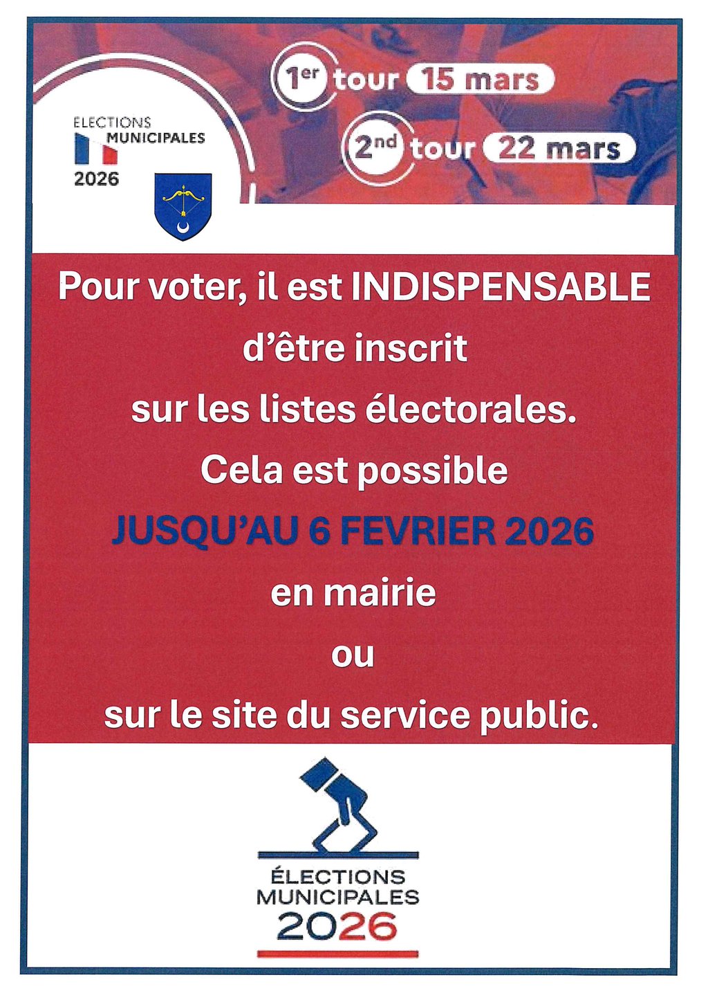 Pour voter, il est indispensable d'être inscrit sur les listes électorales.