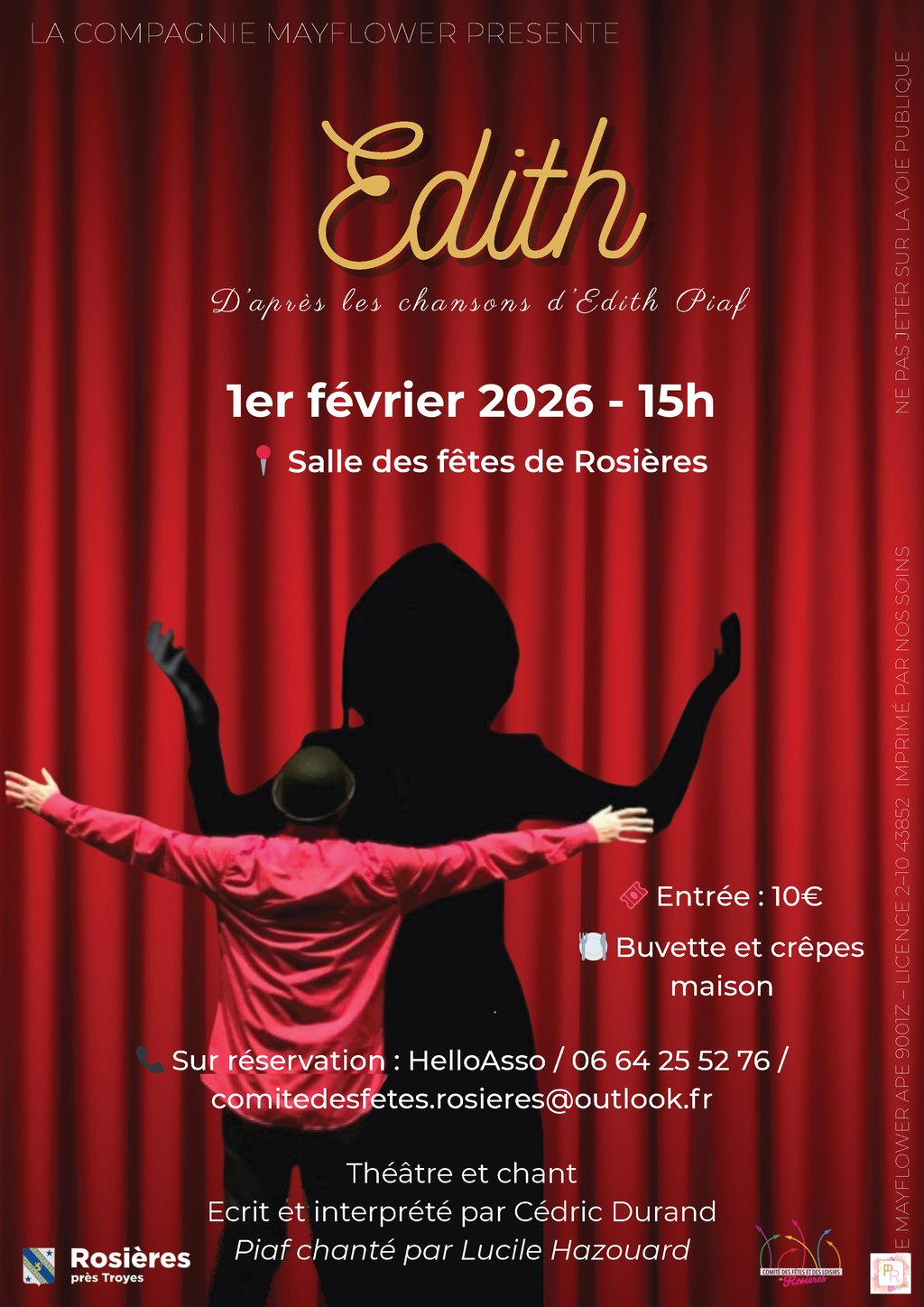 Dimanche 1er février : Spectacle musical ÉDITH de la compagnie Mayflower à la Salle des fêtes