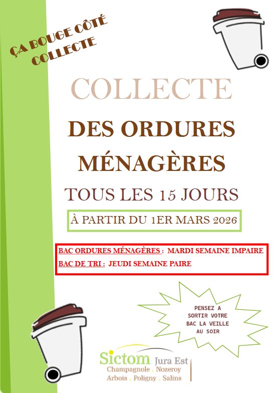 Dès le 1er mars, la collecte des ordures ménagères évolue. Le passage du camion se fera désormais tous les 15 jours (semaines paires ou impaires selon votre secteur).