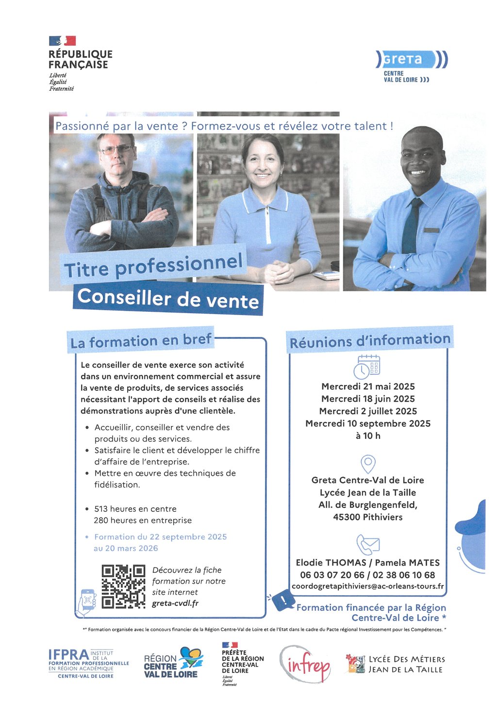 Formation pour adultes " Titre Professionnel Conseiller de vente" de niveau bac