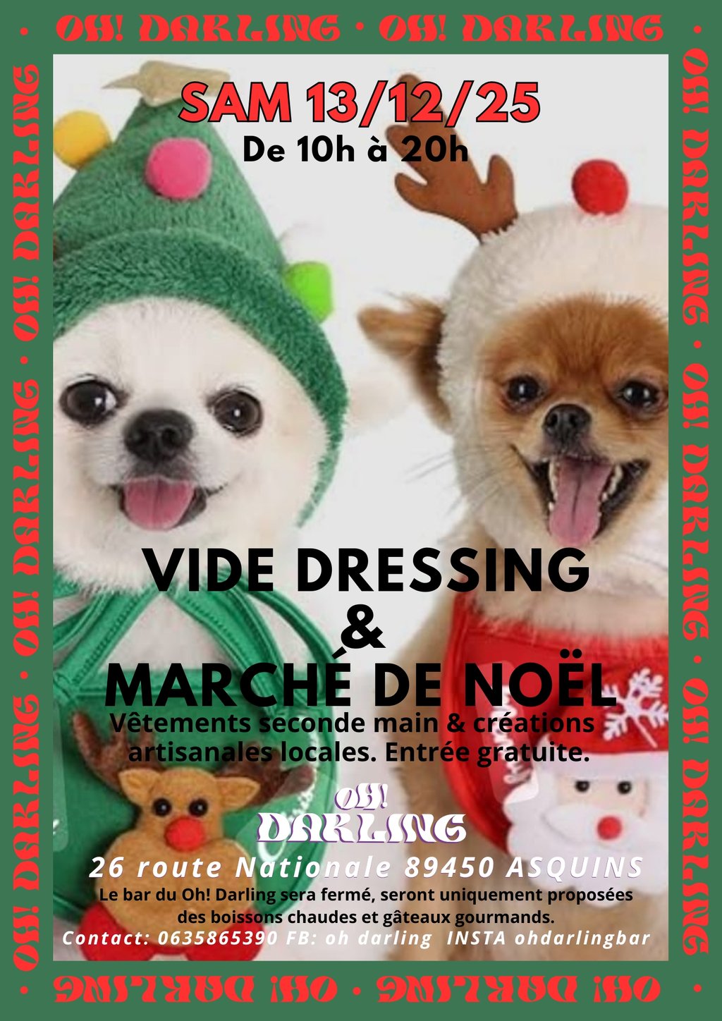 👋 Samedi 13 décembre au bar✨️ Oh Darling✨️ à Asquins de 10h à 20h.