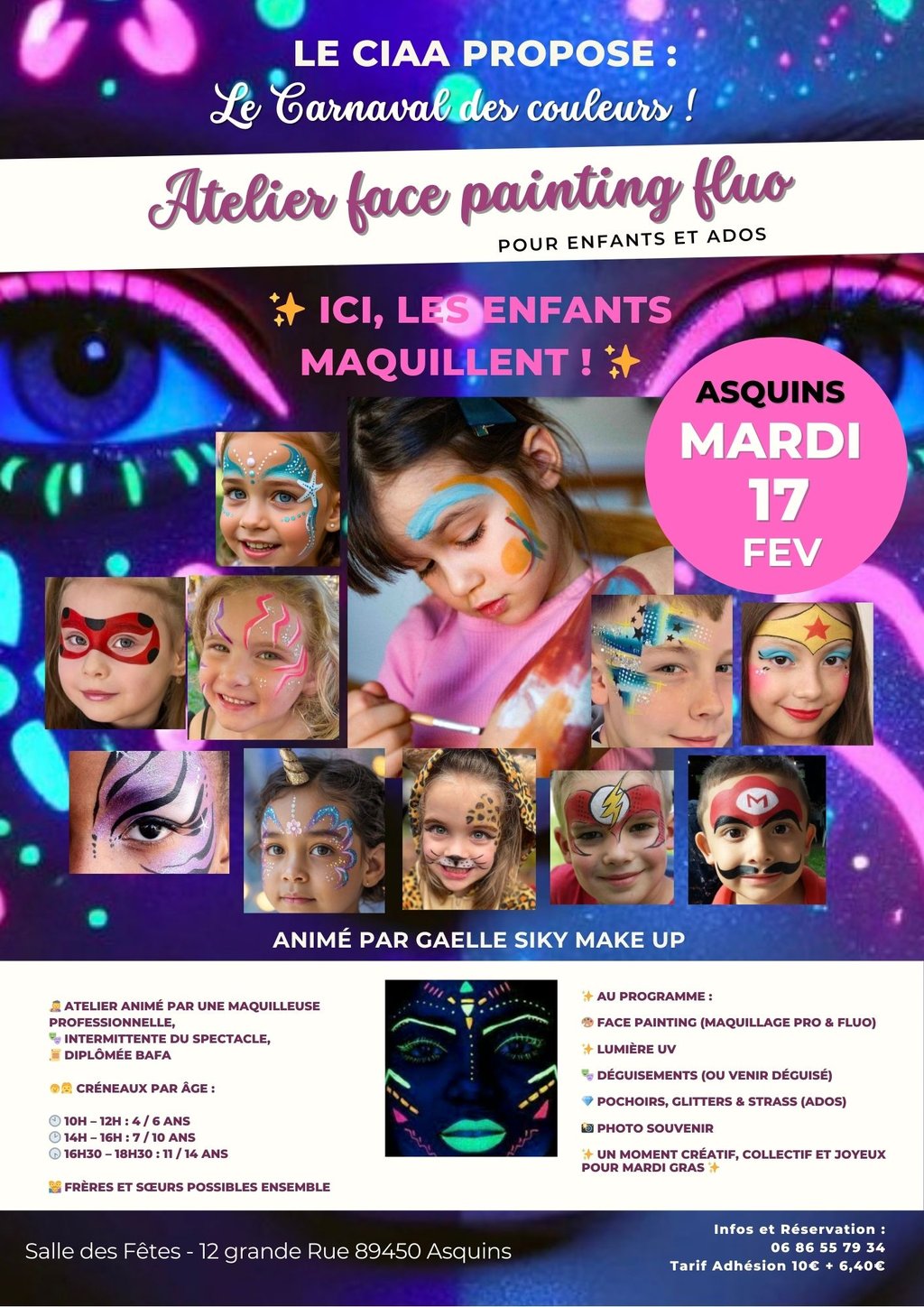 Atelier face painting fluo pour enfants et ados