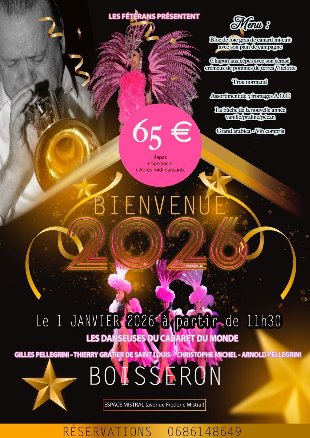 Les Fétérans fêtent la nouvelle année le 1er janvier2026 à 11h30 en salle Chabrol.