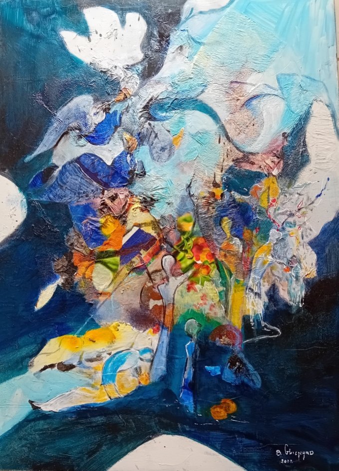 Au milieu d'un atelier où se bouscule tout un attirail de bric et de broc mêlé au grand enthousiasme de peindre, Simone Guignard présente une série de toiles se rapportant à ces émotions que nous procurent les jardins.
