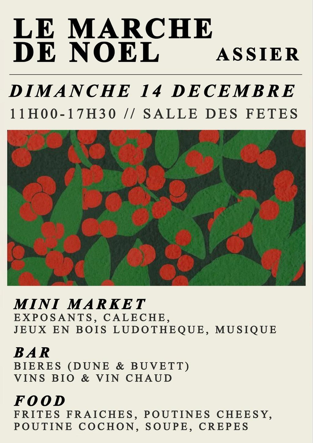 Cette année on se retrouve le dimanche 14 décembre à la salle des fêtes d’Assier, place de la mairie de 11h à 17h30 (en face du château).