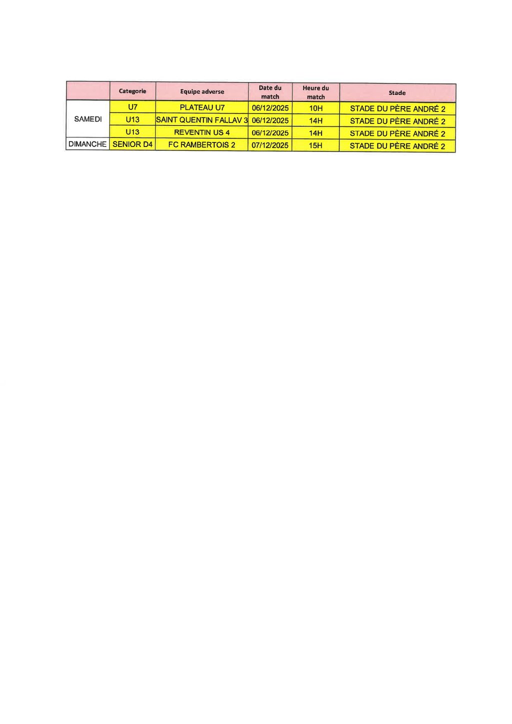 Tableaux des matchs prévus du 7 au 9 novembre 2025 - AS La Sanne Foot