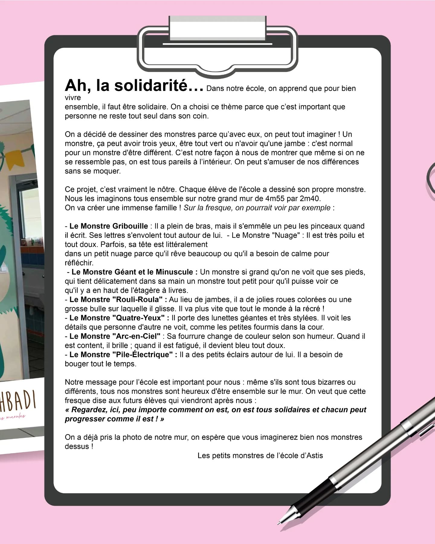 Les élèves de l'école d'Astis ont travaillé pendant plusieurs semaines sur le thème de la solidarité et de la différence. Avec l'aide de leurs enseignants, ils sont désormais parmi les 4 finalistes d'un concours organisé par l'artiste Meuhbadi.