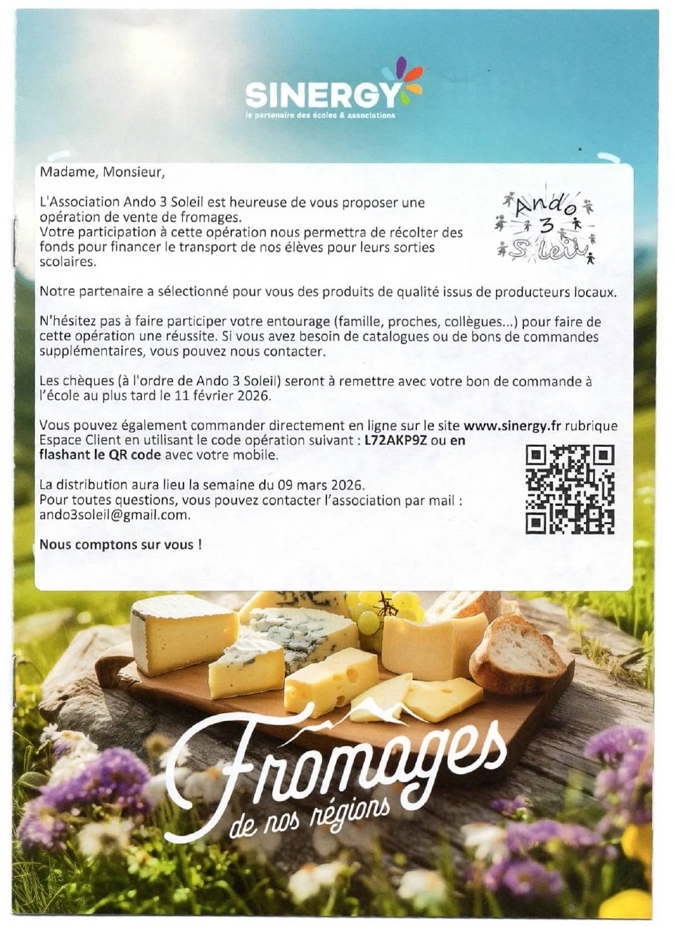 L'association ANDO 3 SOLEIL organise une vente de fromage.