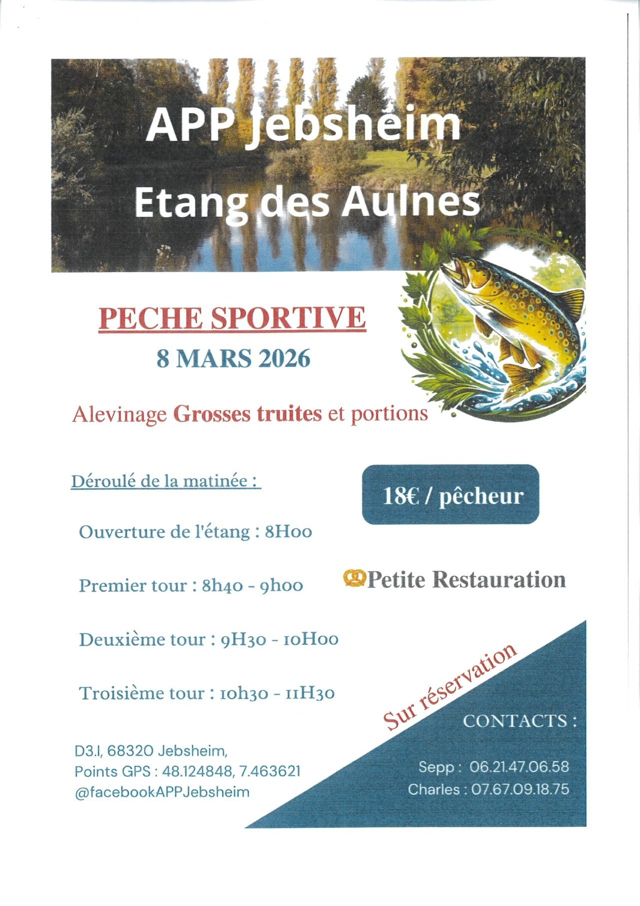 L'APP de Jebsheim organise une Pêche sportive le 8 mars 2026 à l'Etang des Aulnes