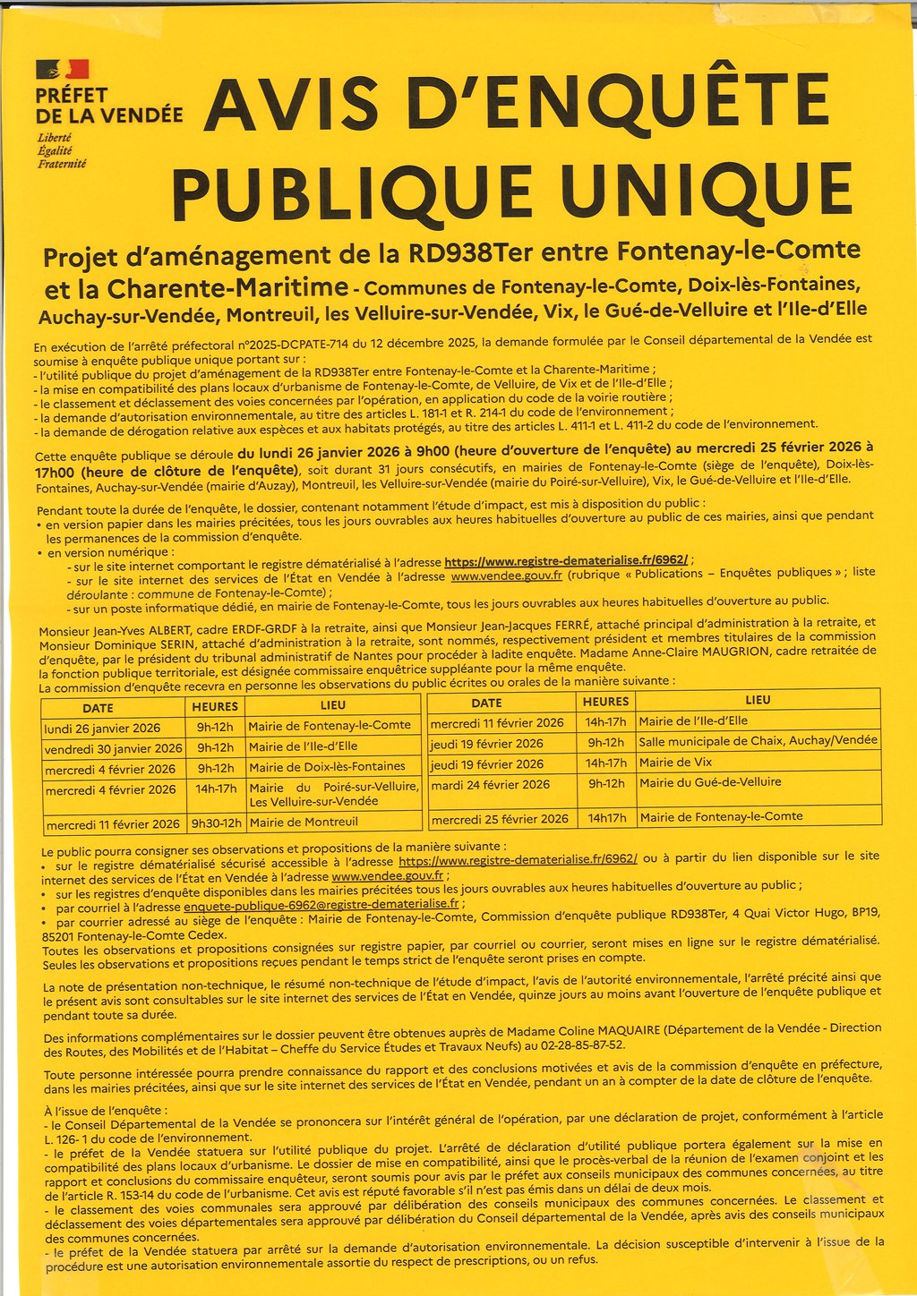 AVIS ENQUÊTE PUBLIQUE RD938TER (ROUTE DE LA ROCHELLE)