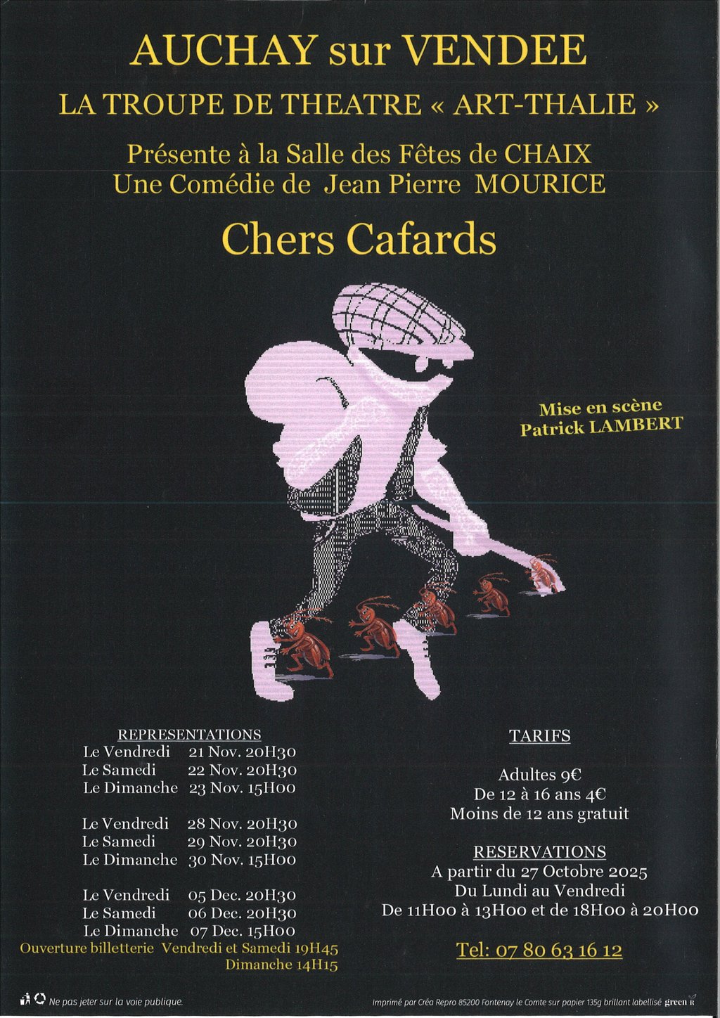 Comme chaque année, la troupe de théâtre "ART-THALIE" propose une pièce de théâtre au cours de 3 week-ends du vendredi 21 novembre au dimanche 07 décembre 2025.
