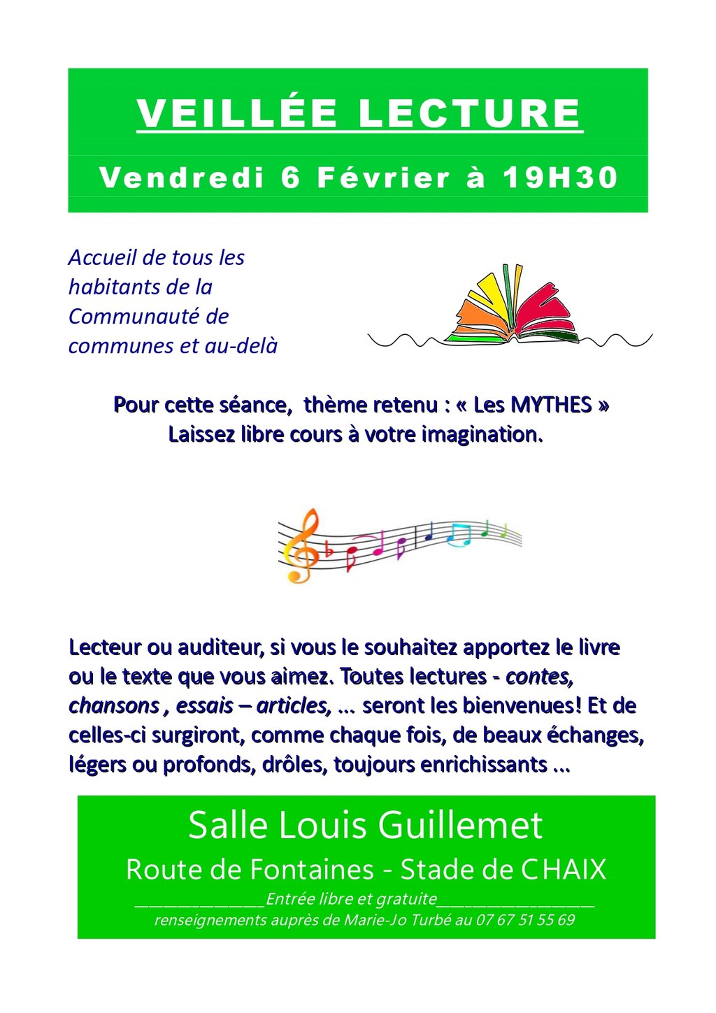 Le club de lecture vous invite à une veillée lecture le vendredi 6 février 2026 à 19h30.