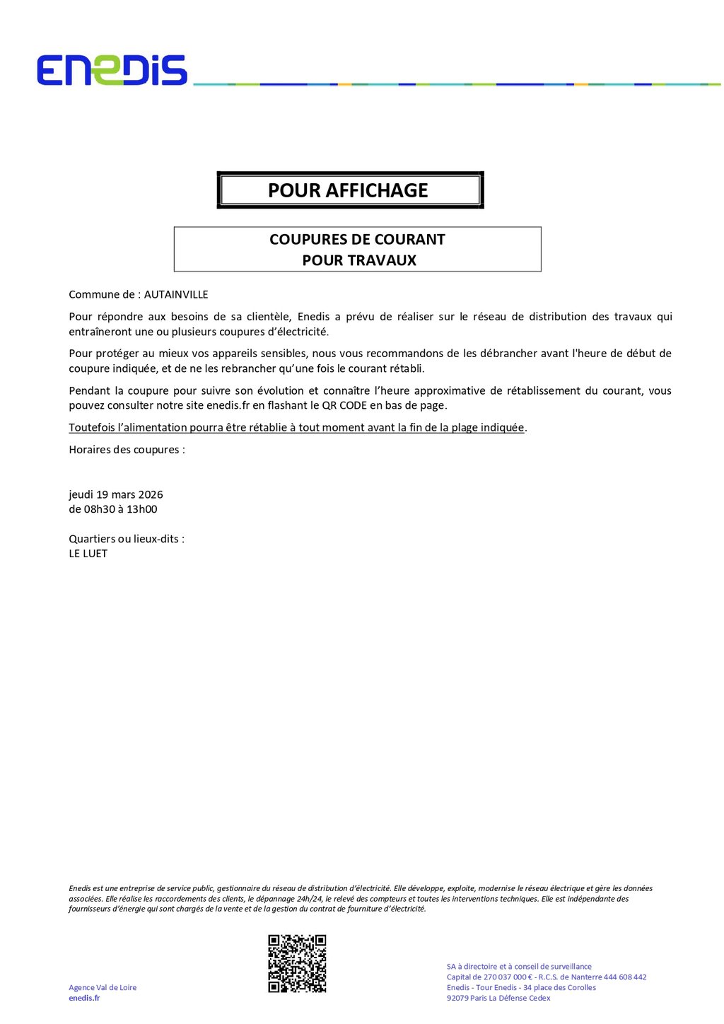 ENEDIS - COUPURE DE COURANT POUR TRAV...