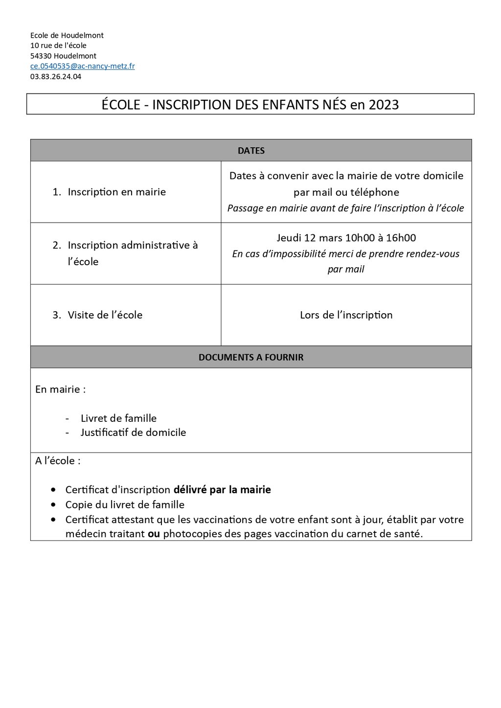 INSCRIPTION SCOLAIRE AU RPI Autrey-Houdelmont-Parey-Saint-Césaire