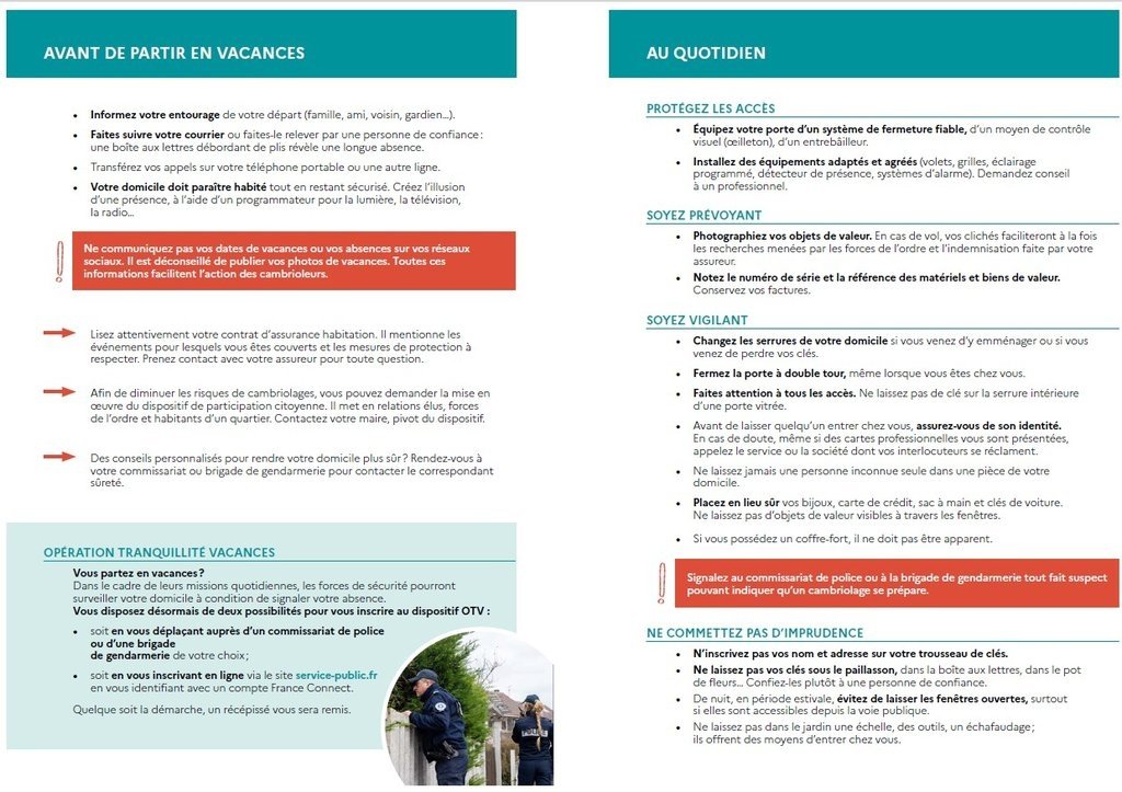 C'est pourquoi nous vous invitons à la plus grande vigilance en rappelant de sécuriser votre habitation, même pour une absence de courte durée.