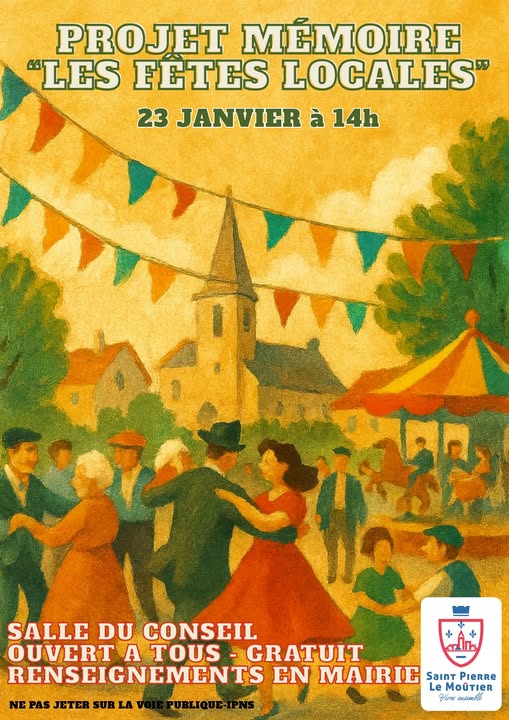 Venez participer au projet mémoire de Saint-Pierre-le-Moûtier dédié aux fêtes locales, un moment d’échanges et de transmission ouvert à tous.