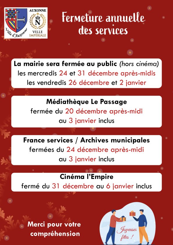 - France services du mercredi 24 décembre après-midi au samedi 3 janvier inclus