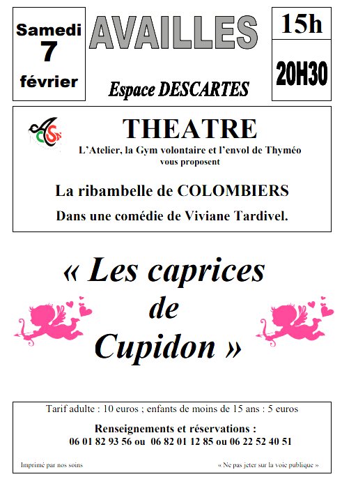 La troupe "La ribambelle de Colombiers" interprète une comédie de Viviane TARDIVEL: "Les caprices de Cupidon"