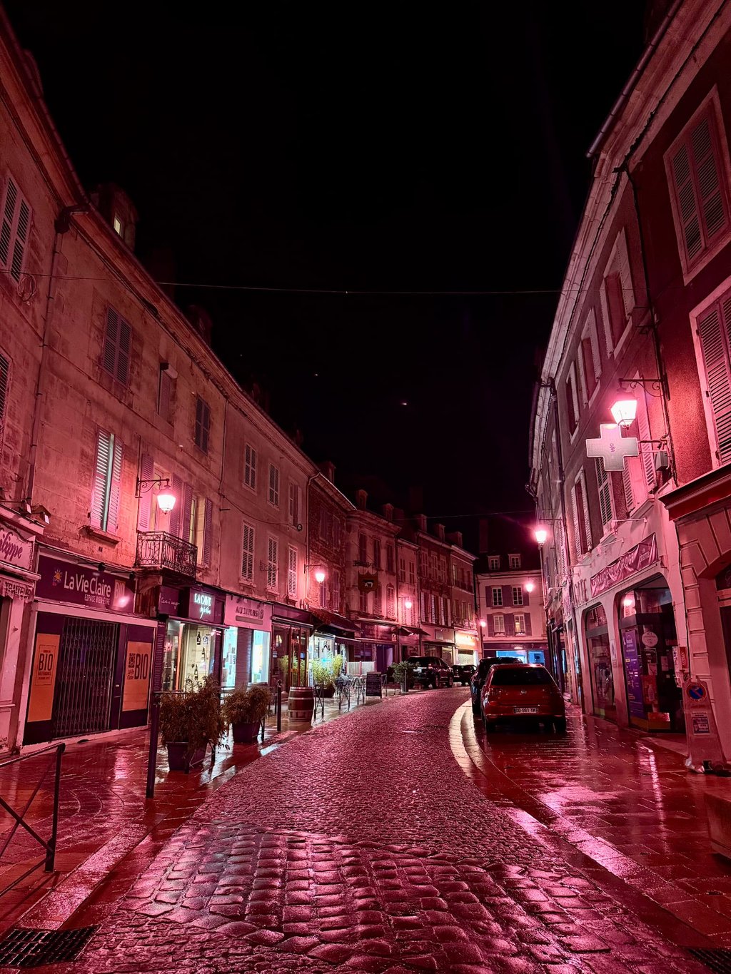 à l'occasion de la campagne Octobre Rose, les rues du centre-ville s'illuminent en rose à la nuit tombée.