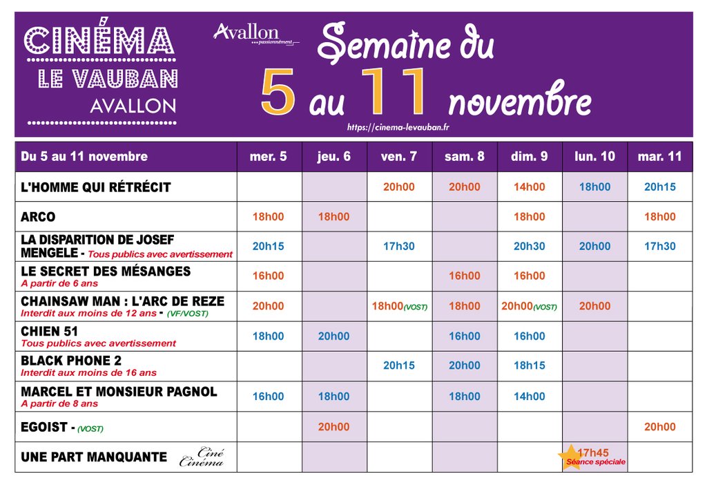 Amis cinéphiles, voici le programme du cinéma pour la semaine du 5 au 11 novembre 2025 !