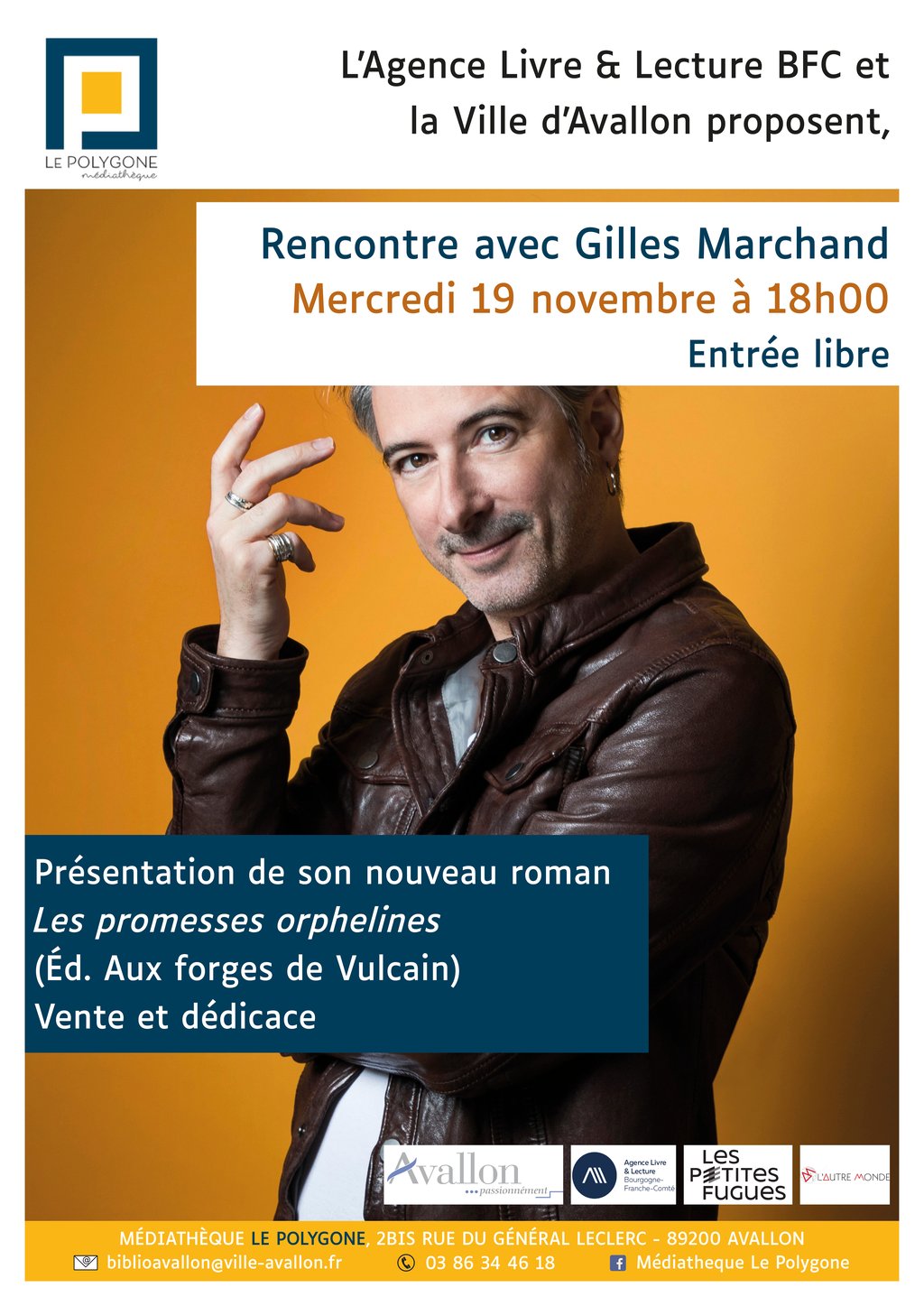 Auteur du "Soldat dĂ©saccordĂ©", Gilles Marchand viendra prĂ©senter son dernier roman "Les Promesses Orphelines", un roman sensible qui suit le parcours dâun jeune rĂȘveur dans la France des Trente Glorieuses.