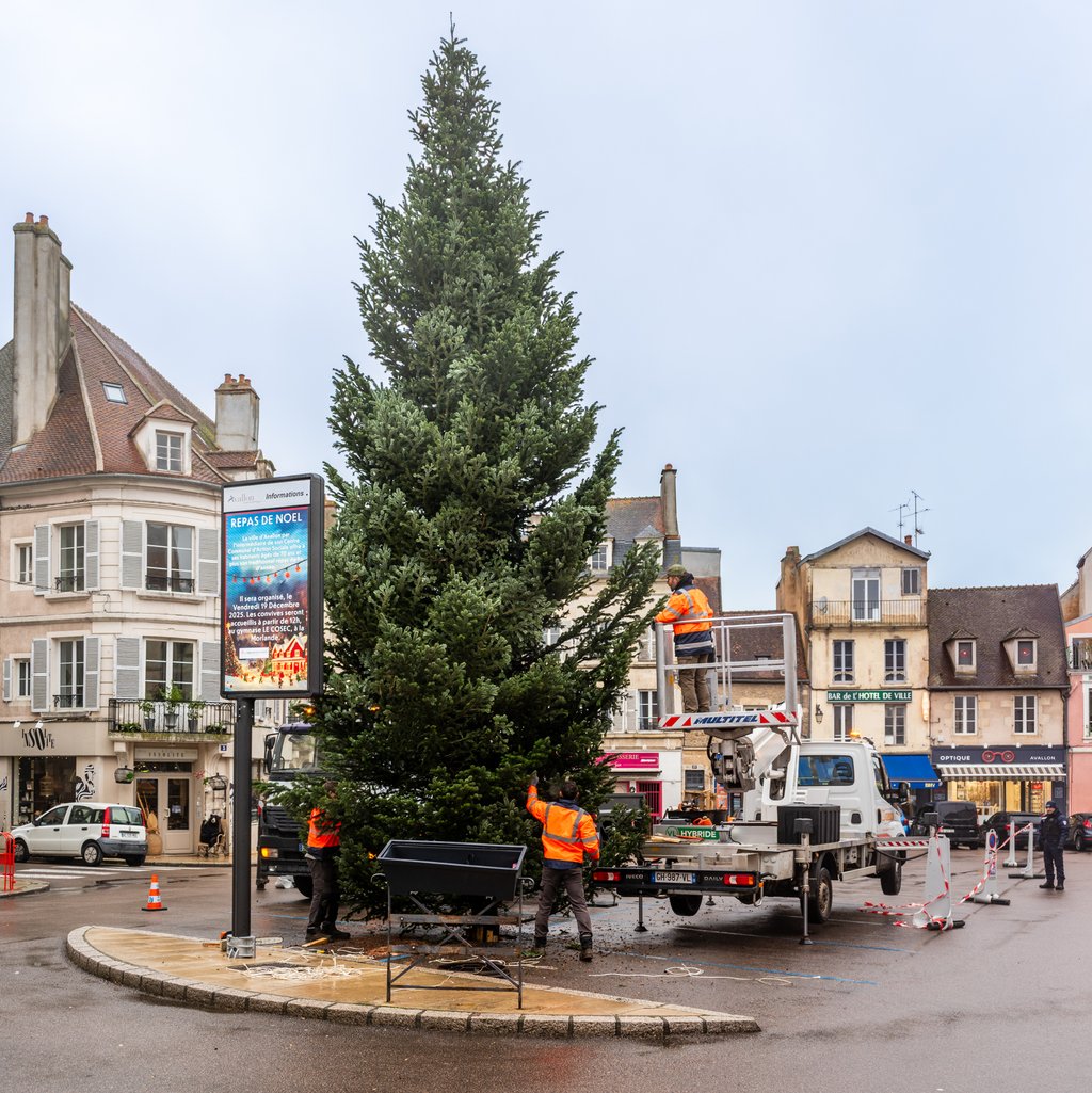 Mardi matin, le grand sapin a quant à lui rejoint le centre-ville. Cet arbre de 14 mètres, venu tout droit du Morvan et plus précisément de Dun-les-Places (EARL du Parc Chaventon), trônera sur la place du général de Gaulle tout le mois de décembre.