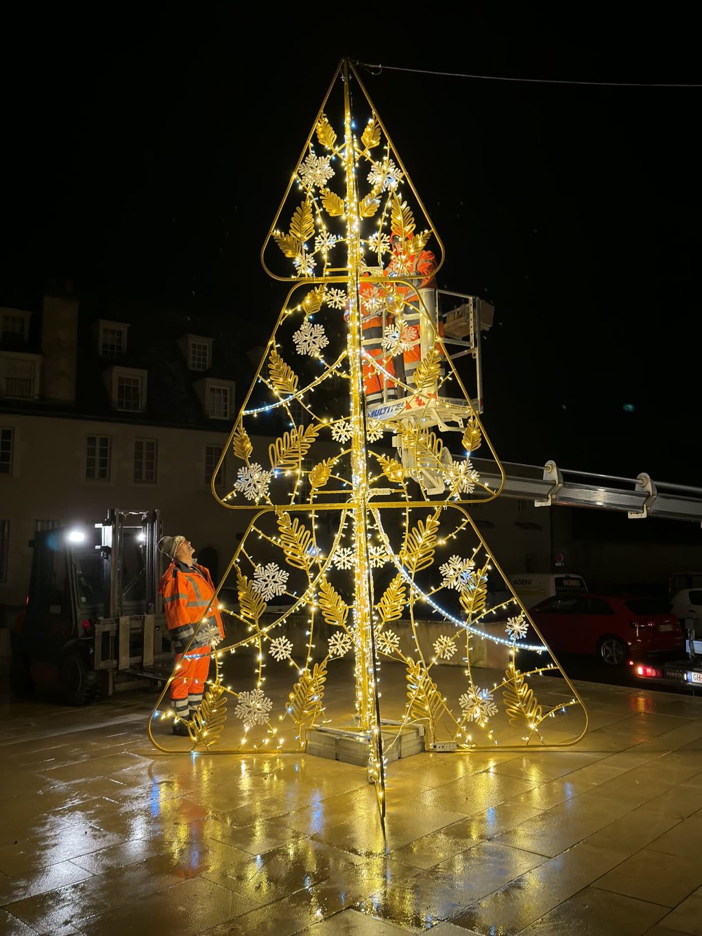 Depuis plusieurs semaines, les agents de la Ville installent les illuminations de Noël : un travail de longue haleine !