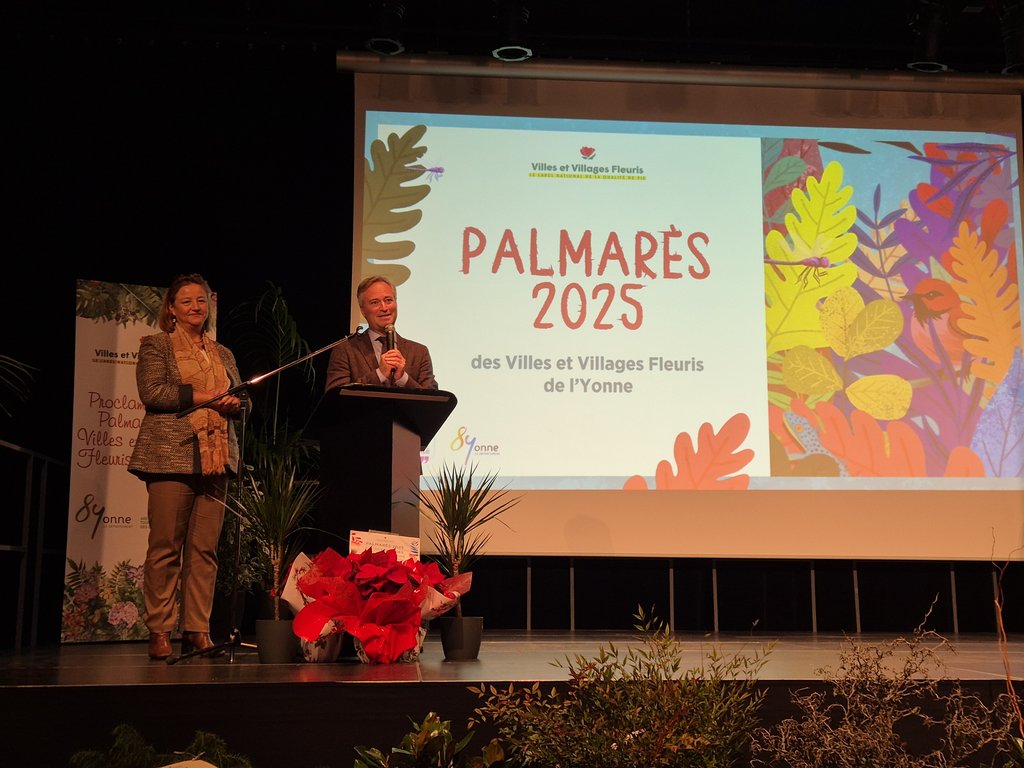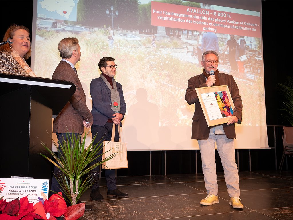 Vendredi 28 novembre 2025, la Ville d'Avallon - représentée par Gérard Delorme, conseiller municipal délégué - s'est vue remettre un prix lors du concours départemental 2025 des Villes et Villages Fleuris.