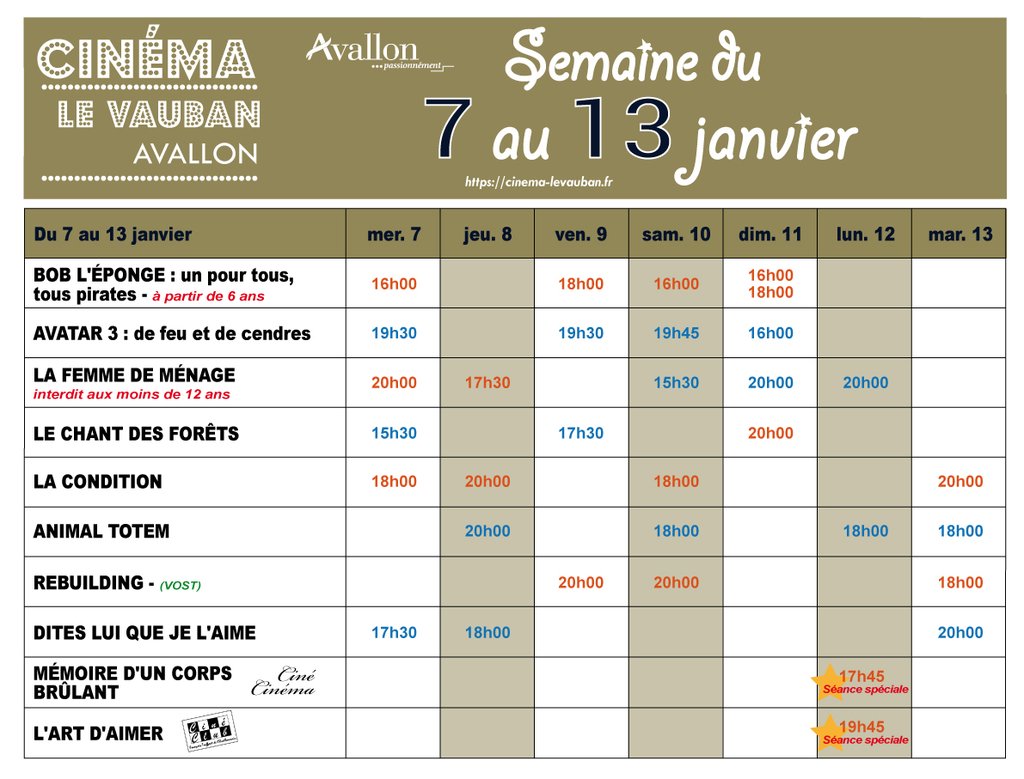 - Lundi 12 janvier à partir de 17h45 : L'équipe du cinéma et le Ciné-Club François Truffaut de l'Avallonnais vous donnent rendez-vous pour une double séance :