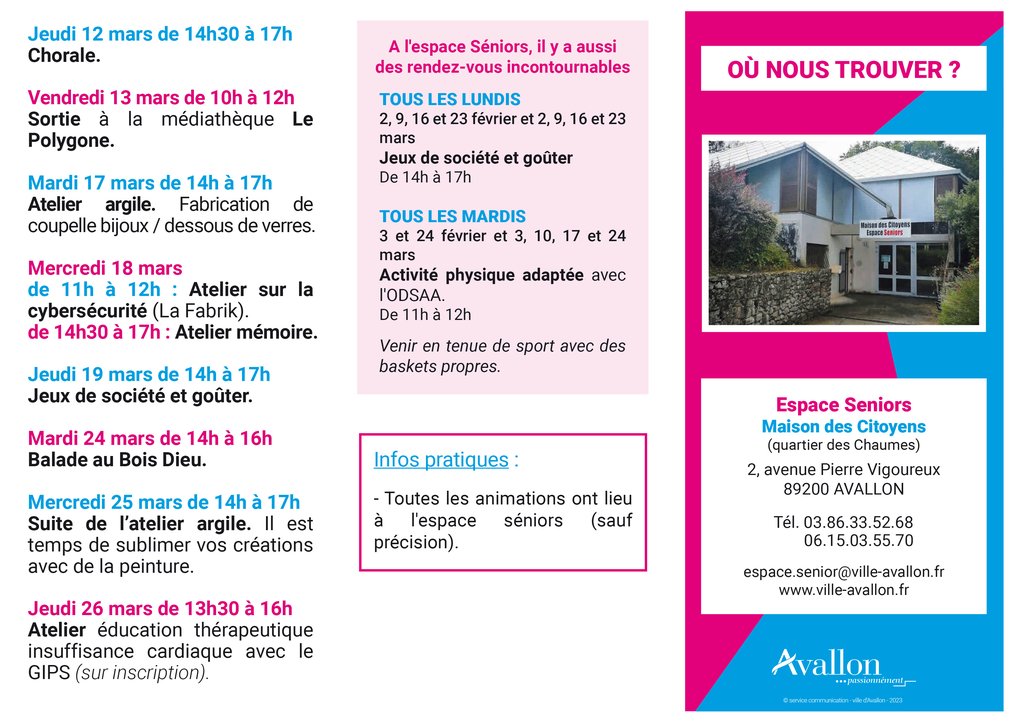 Au programme en février et en mars : sorties, jeux de société, chorale, crêpes party, thé dansant, bowling, ateliers créatifs... et bien d'autres !