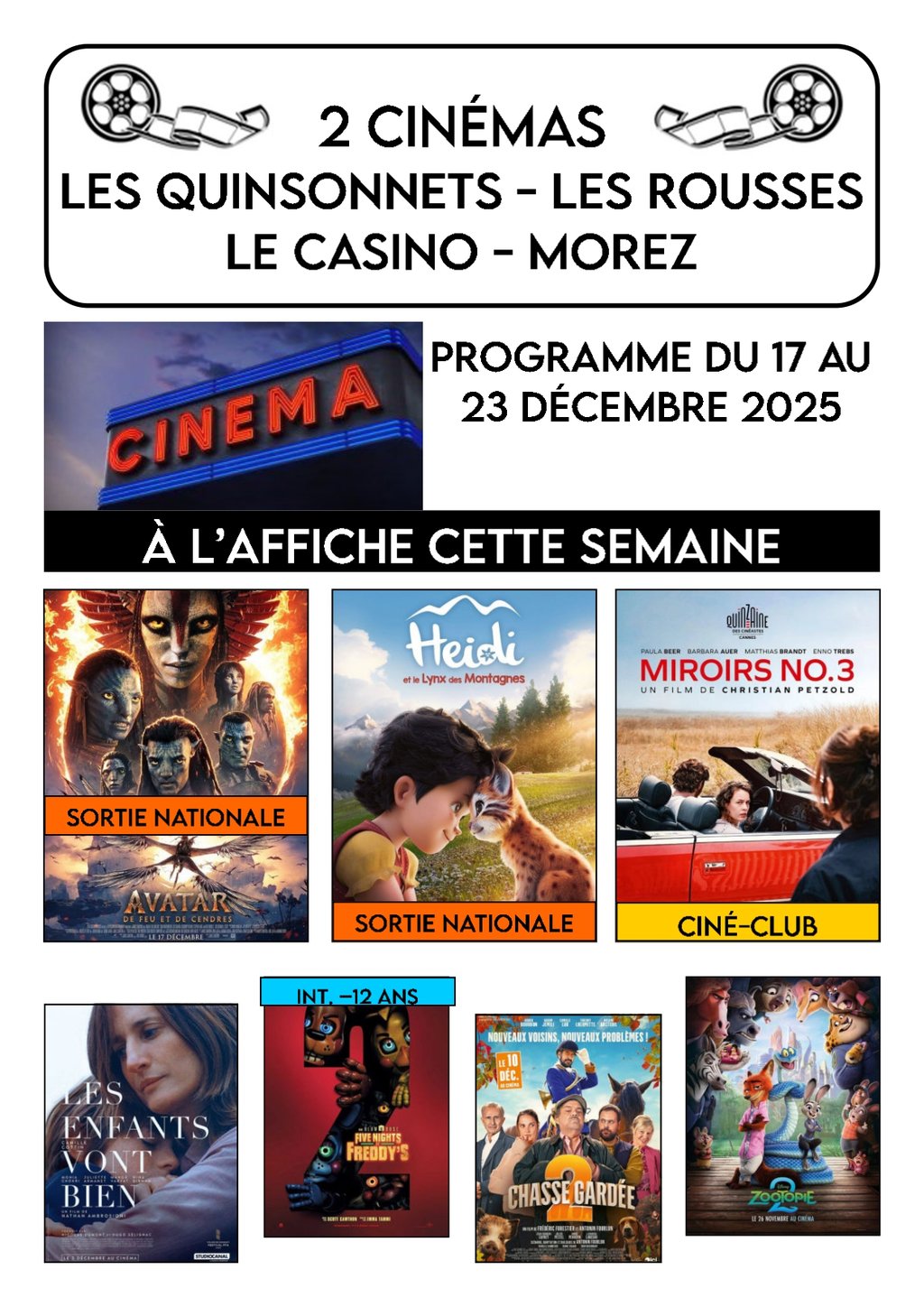 Programme Cinéma Morez/Les Rousses du 17 au 23 décembre 2025