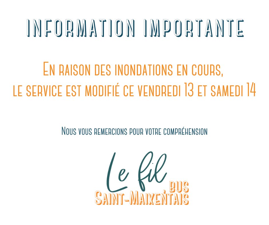 En raison des inondations en cours, le service du "Fil Bus" est modifié les journées du vendredi 13 février et du samedi 14 février matin.