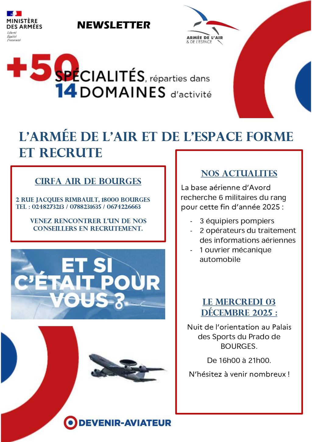 🟦 Recrutements en cours sur la Base aérienne d’Avord pour fin 2025 :