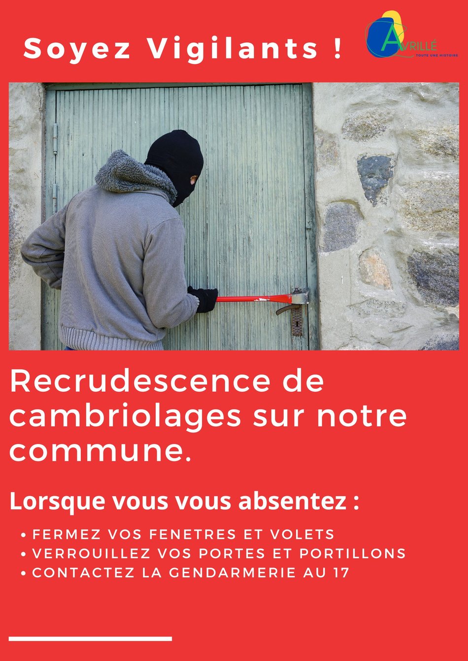 La municipalité informe les habitants que des cambriolages ont été constatés sur la commune et les communes aux alentours.