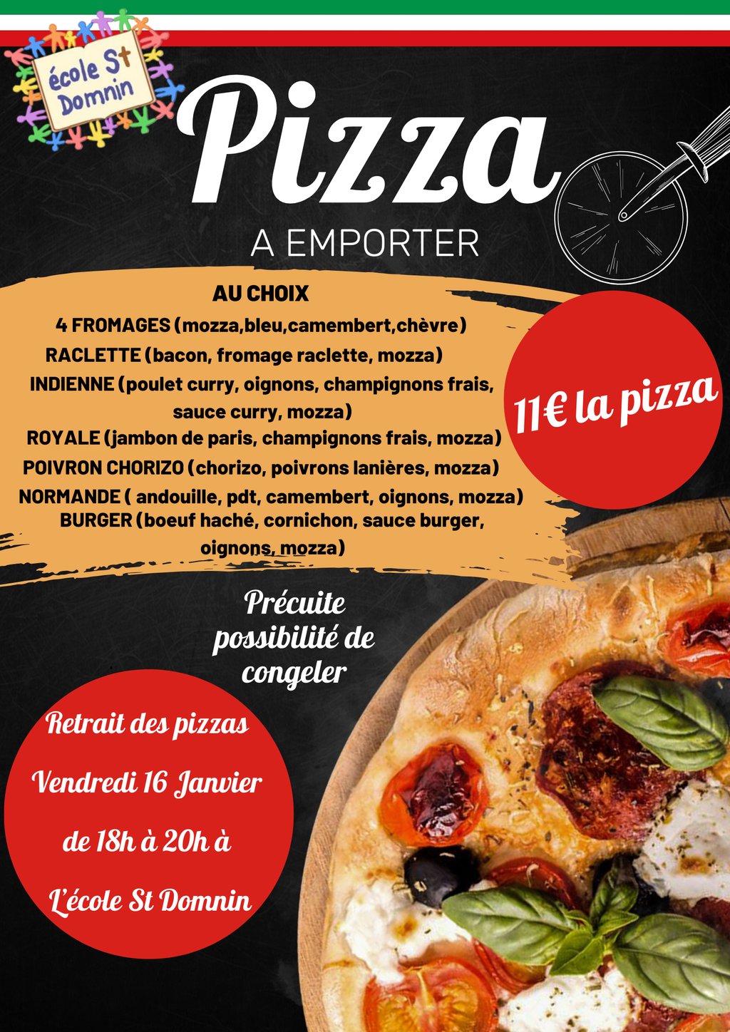 Le retrait des pizzas aura lieu à l'école :