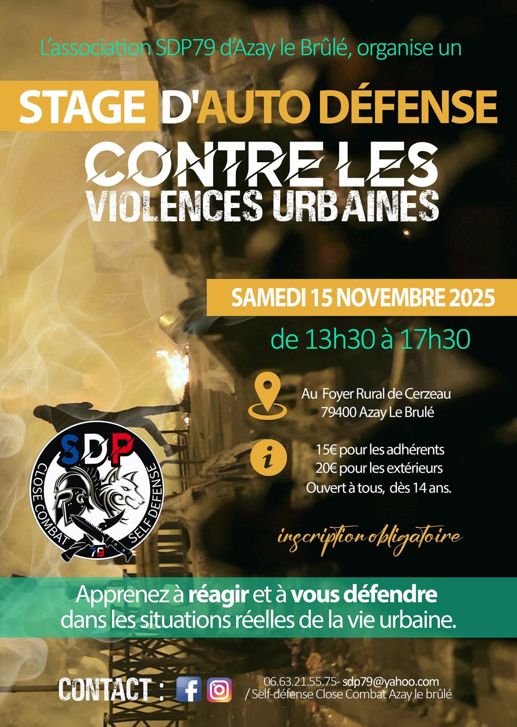 Dans une société où manifestations, émeutes, agressions de rue ou dans un lieu public sont malheureusement des évènements quotidiens... apprenez à vous défendre lors de notre stage inédit en #DeuxSèvres !