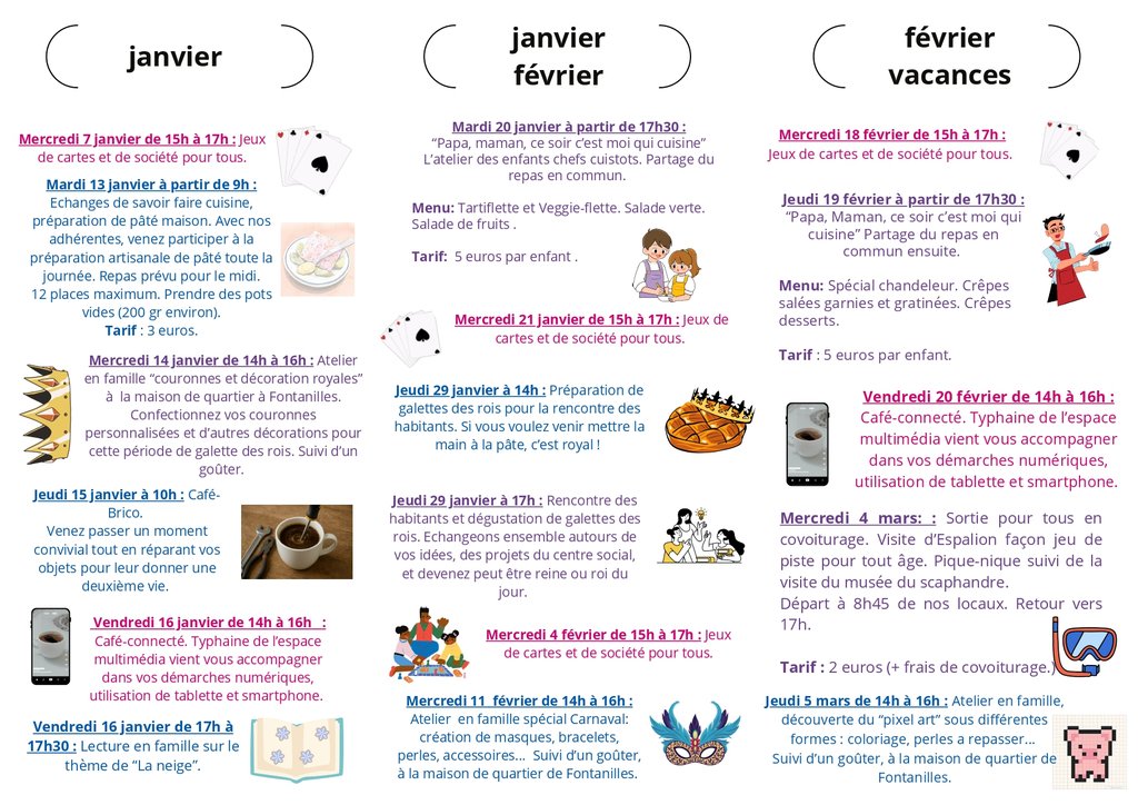 Programme des activités de la maison solidaire à Mende - janvier et février 2026