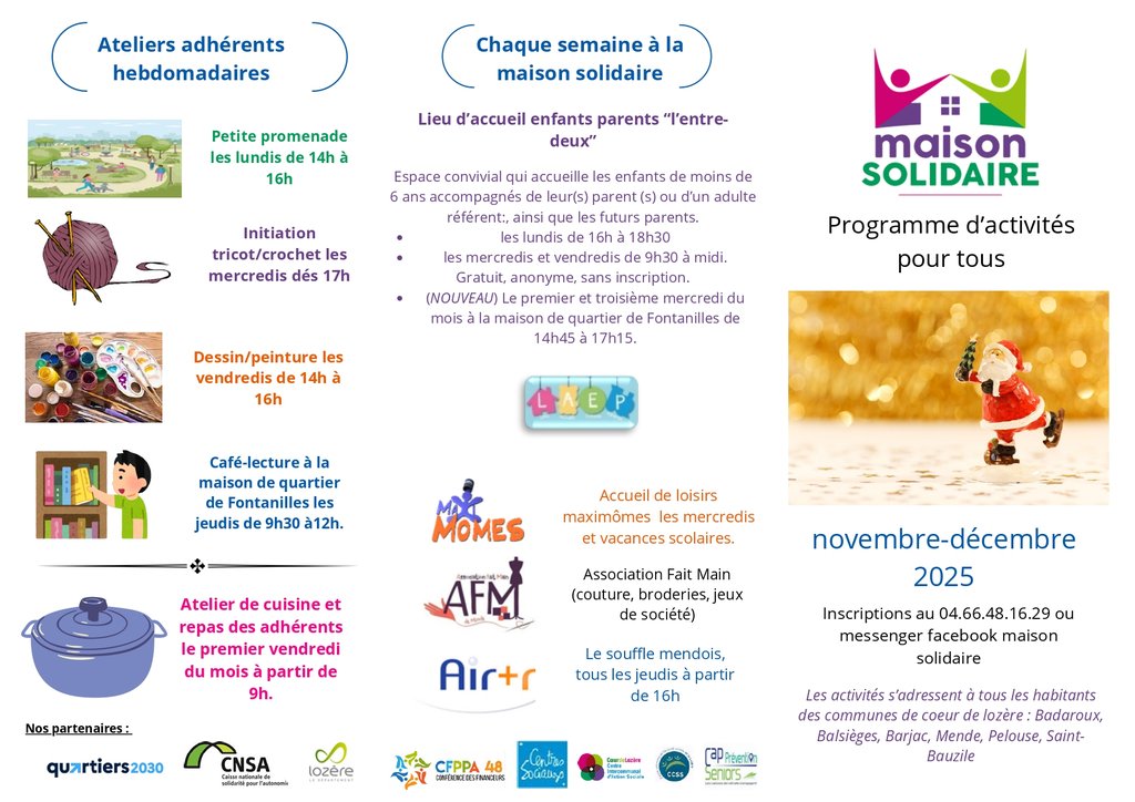 Programme des activités de la maison solidaire à Mende - novembre décembre 2025