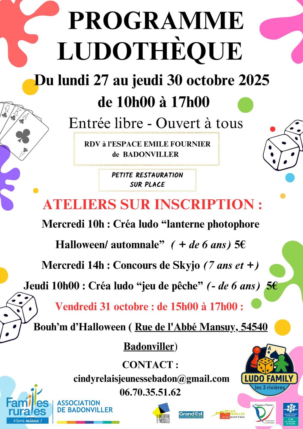 27/10 au 30/10 Ludothèque "Ludo'Family" : ouvert à tous petits et grands !