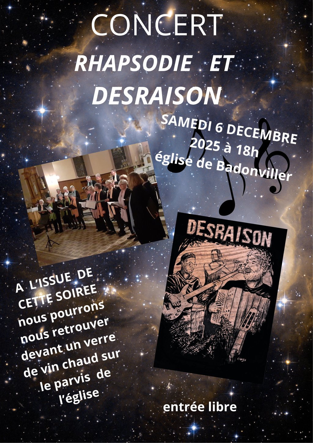 CONCERT LE SAMEDI 6 DÉCEMBRE EN L'ÉGLISE DE BADONVILLER
